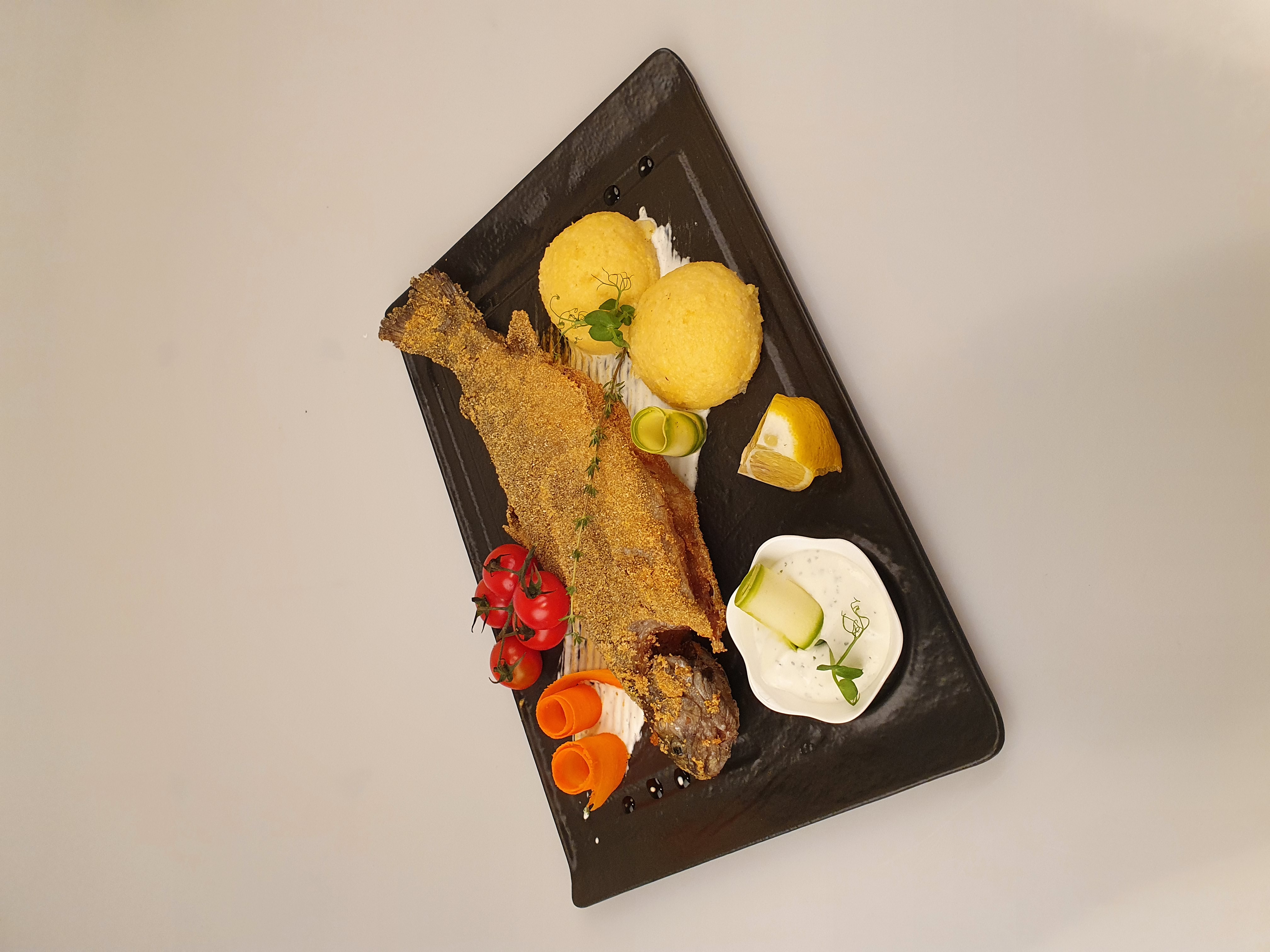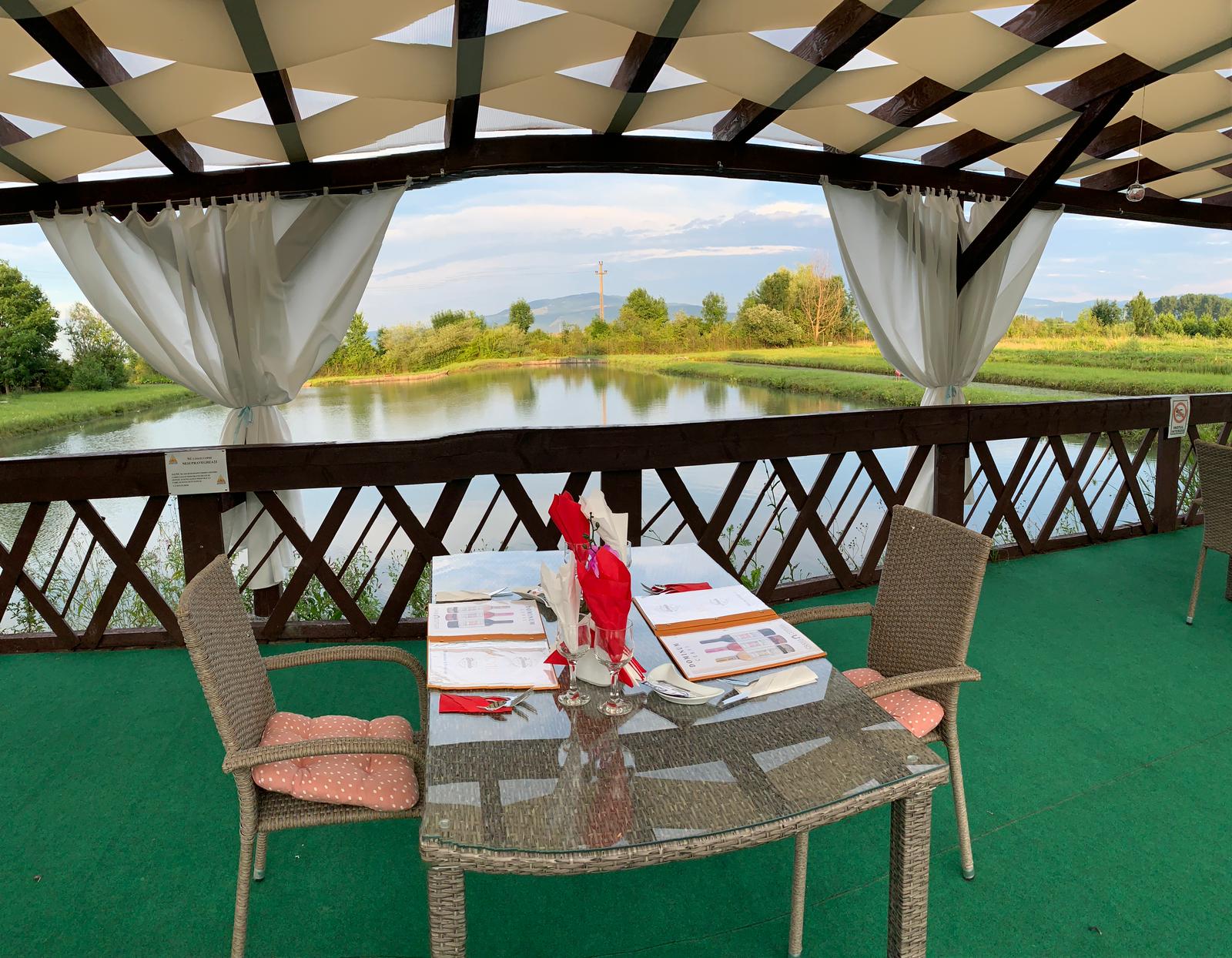 Cu un accent pe prospețime, gust, creativitate și inovație, meniul nostru vă oferă o gamă largă de preparate, atât rețete cu pește cât și mâncăruri cu carne de pui, porc, curcan etc. ... cu ingrediente atent selecționate și pregătite de bucătarii noștri, ce pot fi servite atât pe terasele cât și în incinta restaurantului. Suntem mândri să vă putem oferi o varietate de preparate din pește proaspăt din lacurile noastre cu apă rece de izvor de munte.