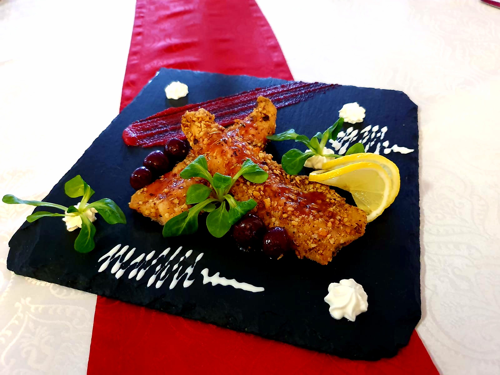 Suntem mândri să vă putem oferi o varietate de preparate, începând de la specialități din pește proaspăt din lacurile noastre cu apă rece de izvor de munte până la preparate din pui, porc, curcan și nu numai.